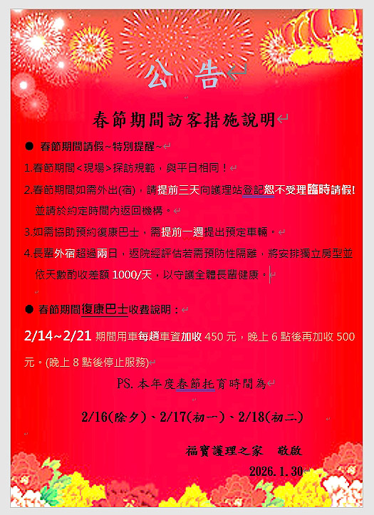 春節期間訪客措施說明